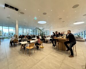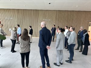 Ensuite, la visite des locaux, accompagnée de guides, a permis à chacun de découvrir la magnifique architecture du bâtiment et l’aménagement design de ce cadre de travail exceptionnel.